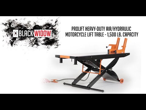 Are you tired of breaking your back while working on your beloved motorcycle? Frustrated with makeshift solutions that put your bike at risk? Say goodbye to those worries! The Black Widow ProLift Lift Table is here to revolutionize your maintenance routine. This beast of a lift table tackles the age-old problem of accessibility and safety when servicing motorcycles, especially larger ones like Harleys and cruisers. By effortlessly elevating your bike to a comfortable working height, it eliminates strain on your body and provides a secure platform for all your maintenance needs. Imagine the relief and confidence you'll feel knowing your prized possession is safely secured at the perfect height, allowing you to focus on the task at hand without any nagging concerns about stability or safety.