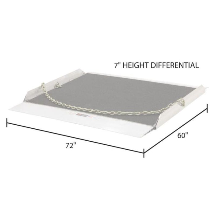 Hey there, loading dock champion! Are you tired of playing "Forklift Frogger" every time you face a towering 7-inch gap between your truck and the dock? Does the thought of navigating that chasm make you want to throw in the towel and take up a less stressful job, like alligator wrestling? Well, hold onto your hard hat, because the 5' x 6' HD Ramps Lightweight Aluminum Dock Board is about to turn your loading nightmares into sweet, efficiency-filled dreams! This isn't just any old dock board - it's the heavyweight champion of the loading world, without the weight. Picture this: you're staring down a 7-inch height difference that's threatening to eat your forklift for breakfast, and instead of breaking into a cold sweat, you confidently deploy this aluminum lifesaver. With its whopping 20,000 lb weight capacity, you'll bridge that gap smoother than a velvet-voiced radio DJ. No more white-knuckle forklift gymnastics, no more cargo doing the cha-cha on the edge of disaster, and definitely no more praying to the logistics gods for a miracle. This dock board transforms the pulse-pounding drama of conquering height differences into a feel-good sitcom, leaving you grinning like you've just discovered the secret to infinite bubble wrap. Get ready to experience the pure joy of hassle-free loading - it's like giving your dock its own personal superhero, minus the cape and tights!